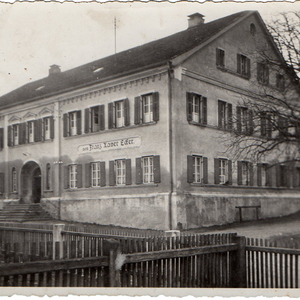 Alles im Gasthaus erinnert an Franz Xaver Ecker. Er war ein Gastronom durch und durch. Er stand als Koch am Herd, als Metzger in der hauseigenen Metzgerei und bediente in selbiger mit großer Freude seine Kunden, von denen viele gern gesehene Stammkunden und Freunde geworden sind. Seine freien Minuten verbrachte er am Liebsten mit seiner Frau Inge am Stammtisch und hatte allzeit einen lustigen Spruch parat. Die Bewirtung, ob im Gasthaus oder der Metzgerei, war seine Leidenschaft.